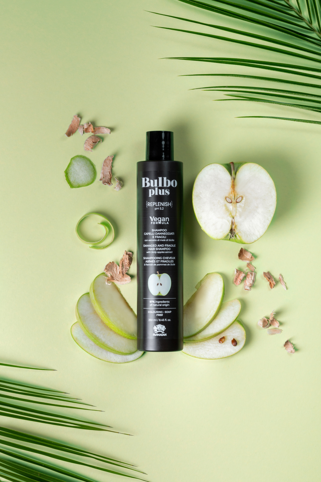 Șampon restructurant cu extract de mere din Sicilia, ideal pentru părul slăbit, delicat și fragil.